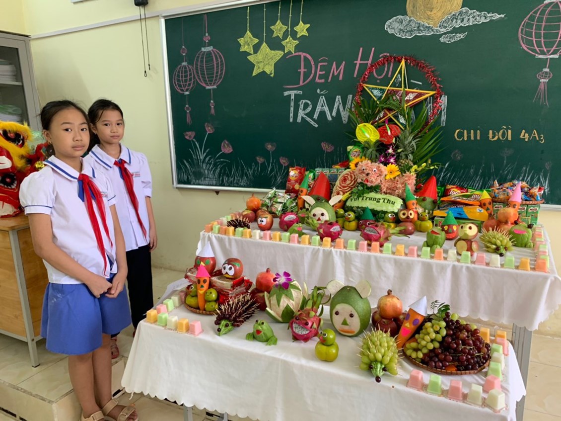 Để Tết Trung thu thực sự là ngày hội của các em, nhà trường đã tổ chức cho các lớp tham gia làm các mâm cỗ trung thu. Với sự giúp đỡ của các thầy cô giáo và các phụ huynh học sinh, từ các loại hoa quả khác nhau các em tạo ra được những con vật đáng yêu, ngộ nghĩnh với nhiều hình dáng phong phú, trang trí mâm cỗ trung thu đẹp mắt, thể hiện niềm vui và tính sáng tạo trong mỗi sản phẩm.