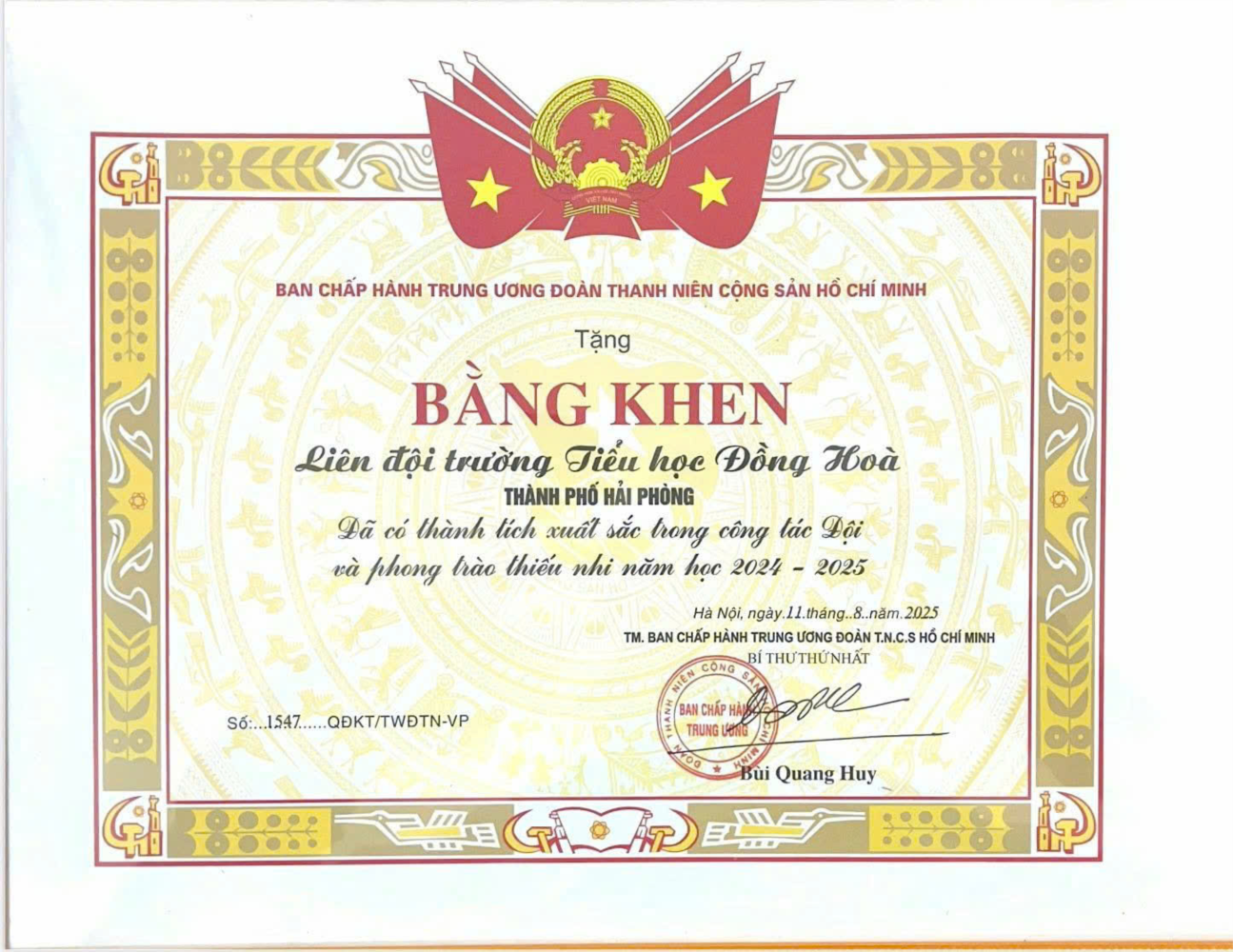 Tại Hội nghị, Liên đội trường Tiểu học Đồng Hoà được Ban chấp hành Trung ương Đoàn tặng Bằng khen “Đã có thành tích xuất sắc trong công tác Đội và phong trào thiếu nhi năm học 2024-2025”.