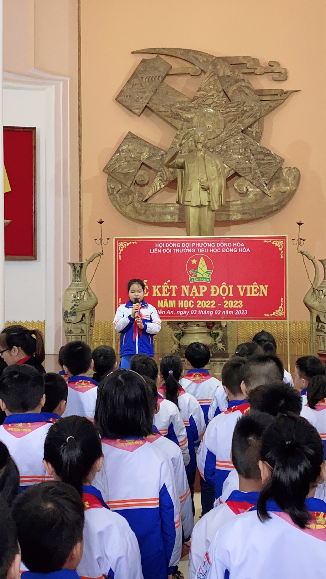 Sáng ngày 03/02/2023, được sự nhất trí của Hội đồng Đội phường Đồng Hoà, Ban Giám hiệu nhà trường, Liên đội trường Tiểu học Đồng Hoà tổ chức Lễ Kết nạp đội viên cho các em nhi đồng ưu tú khối lớp 3 đã được ghi nhận trong thời gian qua và có nguyện vọng đứng trong hàng ngũ của Đội TNTP Hồ Chí Minh tại Bảo tàng Quân khu 3. Xin chúc mừng các em.