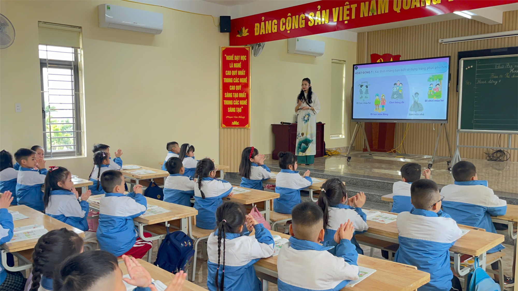 Cô giáo Lê Thị Thanh Duyên thực hiện chuyên đề với tiết Hoạt động trải nghiệm Bài 14: Sử dụng trang phục hằng ngày.